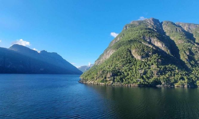 Норвегия е популярна с фиордите си. Това са тесни заливи между скални хълмове, образувани от движението на ледници. Хелесилт е малко селище, известно най-вече с това, че се намира в началото на едни от големите норвежки фиорди. Лятно време селцето се издържа основно от туризъм, когато хиляди туристи идват тук, за да се отправят на екскурзия с корабче до близкия фиорд Гейранген. От тук се организира и изкачване по глетчера Бриксдал. Ще имаме технически стоп, за тези които имат екскурзия. След това ще отплаваме към Гейрангер, където имаме престой от 12.00 до 21.00 ч. Тук може да изберете между различните предложения на кораба: обиколка с каяк, разходка с лодка из фиорда, панорамна екскурзия с автобус.
