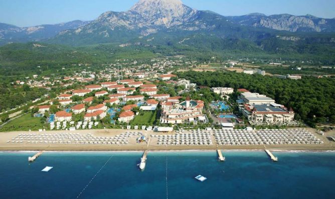 Хотелският комплекс е разположен на площ от 200 000 мкв.м сред зелена борова гора, на 17 км от Кемер, на 75 км от летище Анталия. Хотелът е построен в традиционен турски стил.