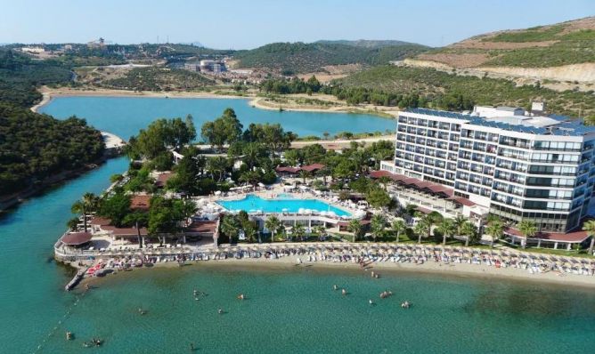 Tusan Beach Resort се намира на брега на морето, сред зеленината на градина и с чудесна гледка към морето. Летище "Милас" отстои на 110 км от хотела, центърът на Кушадасъ и на 5 км.
