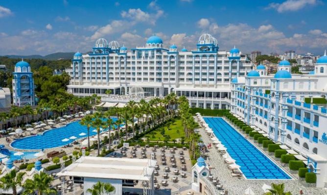Собствен пясъчен плаж и бар на плажа, 3 открити басейна, закрит басейн, 5 водни пързалки. На плажа и при басейна чадъри, шезлонги, матраци и плажни кърпи се предоставят безплатно.