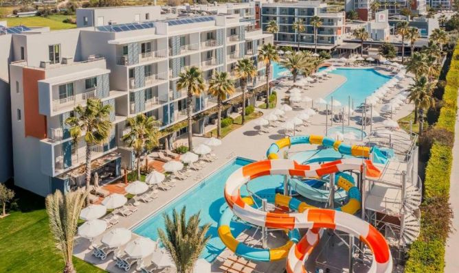 Хотелът се състои от два корпуса (на 4-5 етажа, 8 асансьора), в които са разпределени 300 климатизирани стаи, от които Deluxe Suite (40 кв.м + балкон 11 кв.м), Deluxe Suite Sea View (40 кв.м + балкон 11 кв.м), 2 Bedroom Deluxe Suite ( 46 кв.м + балкон кв.м), Deluxe Suite with Poolside Terrace (40 кв.м + балкон 14 кв.м), Deluxe Suite Swim Up Adult Only +12 (40 кв.м + балкон 40 кв.м), Deluxe Suite with Relax Garden Terrace (40 кв.м + балкон 40 кв.м), Penthouse Suite with Jacuzzi Direct Sea and Ancient Theatre View (40 кв.м + балкон 30 кв.м). Стаите са оборудвани с телевизор, телефон, безплатен Wi-Fi, сет за кафе/чай, баня с душ и сешоар. Ежедневно почистване на стаите.