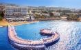 Собствен пясъчно-чакълест плаж с платформа, бар на плажа. 3 открити басейни, аквапарк, закрит басейн. Чадъри, шезлонги и матраци на плажа и при басейна се ползват безплатно, плажни кърпи – срещу депозит.
