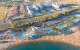 Собствен пясъчно-чакълест плаж (минава се пред подлез), бар на плажа. Външни басейни за деца и възрастни, вътрешни басейни за деца и възрастни, аквапарк. Чадъри, шезлонги, матраци и плажни кърпи на плажа и при басейна се предоставят безплатно.