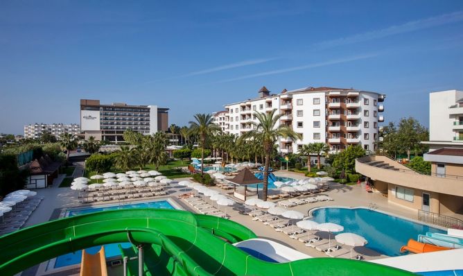 Хотелът разполага със собствен пясъчно-чакълест плаж, 7 басейна, сред които 2 основни басейна, 4 басейна с пързалки за малки и големи и отделен детски басейн. Бар на плажа. Чадъри и шезлонги се ползват безплатно, плажни кърпи - безплатно (1 път на ден).