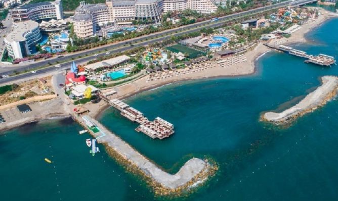 Хотелът разполага със собствен пясъчен плаж с кей. Има 6 открити и 1 закрит басейн, 8 водни пързалки. Чадъри, шезлонги и матраци на плажа и при басейна – безплатно. Плажни кърпи - срещу карта, която се издава при настаняване.