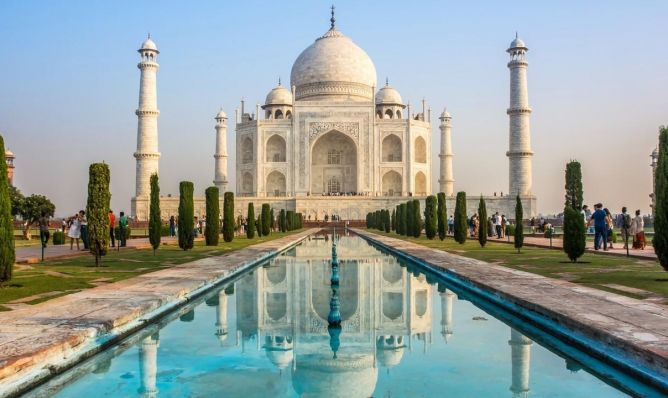 Пред погледа ни ще се разкрие величественият Тадж Махал – „Короната на двореца“, изградена от бял мрамор, сграда, която олицетворява вечната любов. Построен по заповед на император Шах Джахан в чест на любимата му съпруга Мумтаз Махал, той се е превърнал в символ на изяществото, симетрията и безвремието. Трагичната съдба на императора, затворен от собствения си син в Форт Агра, добавя още един пласт емоция – от прозорците на килията си той ежедневно е съзерцавал Тадж Махал, скърбейки както за изгубената си любима, така и за загубената си империя.