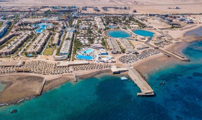 Aladdin Beach Resort 4* се намира на самия бряг на Червено море, в курортната зона на Хургада. Разположен е на около 8–12 км от международното летище и на приблизително 15 км от центъра на града. Хотелът е част от комплекс заедно с съседните Jasmine Village и Ali Baba Palace, с които споделя определени удобства.