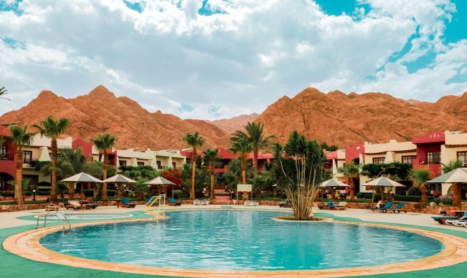 Намира се на 95 км от летището, на 8 км от Дахаб, на брега на морето.