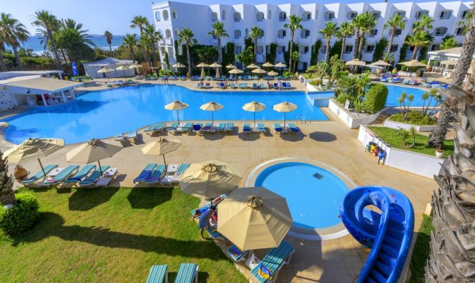 Основен ресторант Thusdrus, 2 а ла карт ресторанта - един с интернационална кухня и втори на плажа, барбекю ресторант (едно безплатно посещение на престой, след предварителна резервация), лоби бар, бар басейн, мавританско кафене, 2 открити басейна, закрит басейн, вътрешен басейн с морска вода в таласо центъра, 5 водни пързалки за възрастни и 1 за деца, анимация, Wi-Fi в лобито, общи части и стаите, сувенирен магазин, обмяна на валута, паркинг.