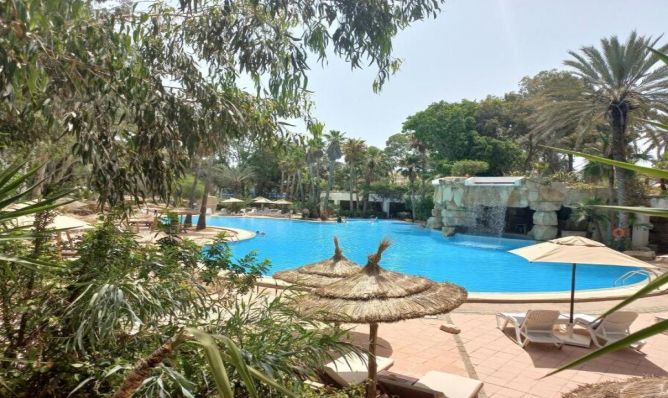 Tunisia Lodge 4* е част от комплекс с два съседни хотела и предлага спокойна атмосфера, обширна градина, открит басейн, достъп до плажа и подходящи удобства за семейна почивка. Работи по концепция