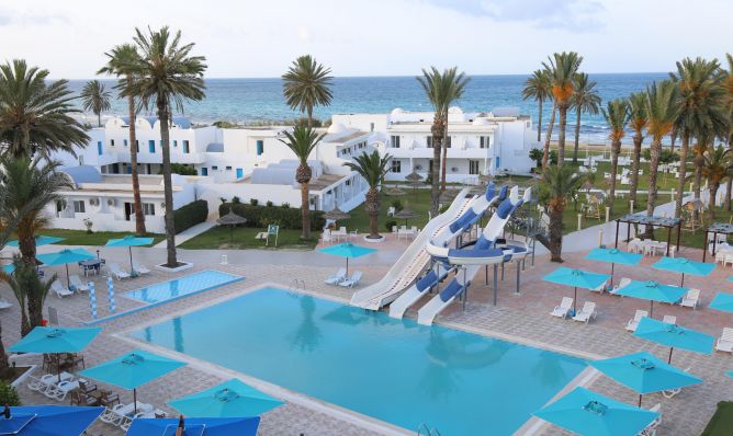 Намира в района на Сус, на 31 км от летище Енфида, на 10 км от центъра от Порт Ел Кантауи, на 19 км от Медината, на брега на морето.