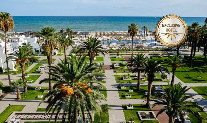 Частен, широк пясъчен плаж, първа брегова линия. Чадъри и шезлонги на плажа и при басейна - безплатно, плажни кърпи - безплатно. Сервират се плодове, вода, сокове, алкохолни напитки (при запитване).