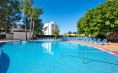 Външен басейн с Лагунообразна форма, оборудван с чадъри и шезлонги, детски басейн. Плажни кърпи срещу депозит