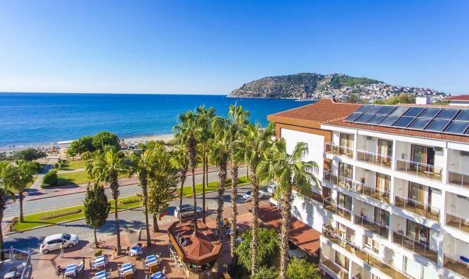 Хотелът се намира на 800м. от центъра на гр.Алания на 125км. от летище Анталия. Построен е през 1986г., с обща площ от 5400 м2., реновиран през 2012г. 3 звезден хотел, само на 1 км от търговските и развлекателни места в центъра на Алания. Можете да се стигнете лесно с автобус и такси до центъра на града.