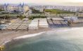 Собствен, пясъчно - чакълест. До плажа се стига посредством подземен тунел. Чадъри, шезлонги и плажни кърпи на плажа и при басейна – безплатно.