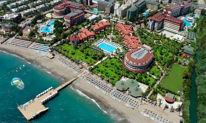 Основен ресторант, 2 а - ла - карт ресторанта(с предварителна резервация), 6 бара, 4 басейна, 5 водни пързалки, анимация, амфитеатър, интернет кафе (срещу заплащане), дискотека (безплатно), обмен на валута, магазини, 2 конферентни зали (500 места), паркинг. За децата: детски басейн, водни пързалки, детегледачка(заплаща се допълнително) Безплатни услуги: турска баня, сауна, фитнес център, дартс, волейбол, баскетбол, тенис на маса, Wi-fi Интернет Платени услуги: масаж, фризьор, Интернет кафе, център за красота, СПА - център, билярд Плаж: Пясъчно - чакълест. Плажни чадъри, матраци и шезлонги – безплатно.