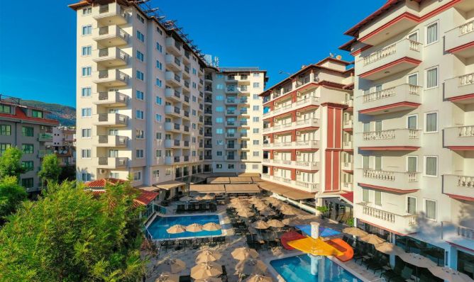 Намира се на 130 км от летище Анталия, на 500 м от центъра на Алания, на 2 км от брега на морето и известния плаж Kleopatra Beach. Построен 1995 г., на обща площ от 8 000 м2. Частично реновиран 2026 г.