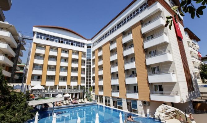 Намира се на 120 км. от летище Анталия, на 130 км. от центъра на Анталия, на 1 км. от центъра на Алания, на 100 м. от брега на морето. Построен е през 1987 г., с обща площ от 1.700 м2, реновиран през 2013 г.