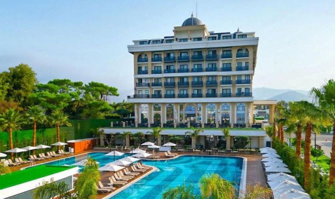 Разположен на 114 км от летище Анталия, 15 км от центъра на града, 80 м до автобусна спирка. Намира се на 50м от собствената си плажна ивица.