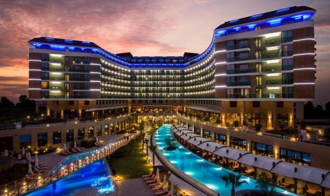 Основен ресторант, 6 а-ла-карт ресторанта (италиански, азиатски, рибен, турски, стек хаус – срещу заплащане; бистро с интернационална кухня - 1 безплатно посещение на 1 от ресторантите при минимум 7 нощувки, с предварителна резервация), 3 снек бара, сладкарница, 9 бара, 4 открити басейна (1 отопляем), 1 закрит отопляем басейн, аквапарк с 9 водни пързалки, СПА център, амфитеатър, открита дискотека, кино, магазини, 5 конферентни зали, паркинг.