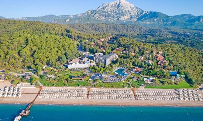 Намира се на 70 км. от летище Анталия, на 18 км. от центъра на Кемер, на брега на морето. Общата площ на хотела е 120.000 м2, напълно реновиран през 2023г.