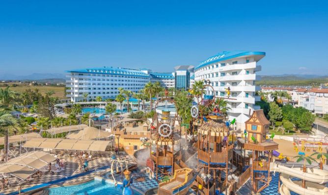 Основен ресторант, 5 а - ла - карт ресторанта(турски, италиански, и мексикански; морски и грил - срещу заплащане), 8 бара, сладкарница, дискотека, 3 открити басейна, 1 закрит басейн, конферентна зала. За децата: детско меню, детски басейн, аквапарк, детска площадка, мини-клуб (4-12 год.), детегледачка (платено). Безплатни услуги: турска баня, сауна, парна баня, джакузи, фитнес аеробика, аквааеробика, плажен волейбол, баскетбол, 2 тенис корта с твърдо покритие, тенис на маса, дартс, мини-голф, боча, баскетбол, анимационна програма, дискотека, безжичен интернет (в лоби). Платени услуги: масаж, боулинг (2 пътеки), билярд, видео игри, игрални автомати, наем на тенис ракети и топки, осветление на тенис кортовете, уиндсърфинг (с лиценз), интернет кафе, водни спортове, СПА - център. Плаж: Собствен на 50м. от хотела, пясъчно - каменист. Бар на плажа - безплатно. На басейна и на плажа: чадъри, шезлонги, матраци - безплатно. Плажни хавлии – с карта за плажни хавлии, срещу депозит.