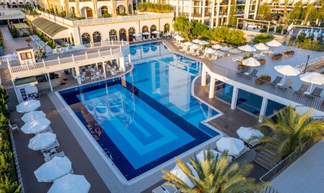 Основен ресторант, 4 а-ла-карт ресторанта (с предварителна резервация - италиански, далекоизточен и османски; мексикански - с доплащане), 7 бара, сладкарница, 2 открити басейна, закрит басейн, водни пързалки, магазини, СПА център, фитнес център, дискотека, паркинг, конферентни зали, WI-FI. За децата: детско меню, детски басейн, водни пързалки, детска площадка, мини клуб (4-7 г.), младежки клуб (8-12 г.), детско кино, мини диско, анимация. Безплатни услуги: сауна, турска баня, парна баня, фитнес, дартс, тенис на маса, плажен волейбол, мини голф, аеробика, водна аеробика, босиа, йога, мини библиотека, анимация, WI-FI. Платени услуги: масаж, фризьор, магазини, игрална зала, компютърни игри, билярд, химическо чистене, лекар, детегледачка, интернет кафе, уроци по сърф, водни спортове.
