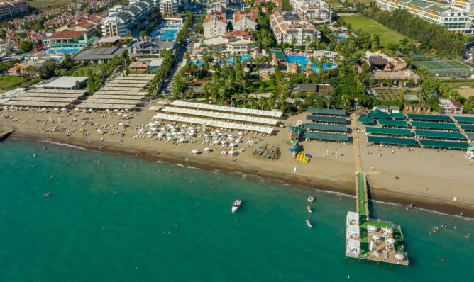 Основен ресторант, 3 а-ла-карт ресторанта (турски, италиански, рибен – 1 безплатно посещение на 1 от ресторантите при минимум 7 нощувки, с предварителна резервация), 2 снек ресторанта, сладкарница, 6 бара, 2 открити и 1 закрит басейн, 3 водни пързалки, СПА център, магазини, 1 конферентна зала.
