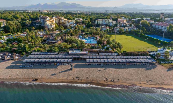 Намира се на 35 км от летище Анталия, на 40 км от центъра на Анталия, на 1 км от центъра на Белек, на брега на морето. Построен през 1995г. на обща площ от 97 000 м2. Реновиран 2012г.