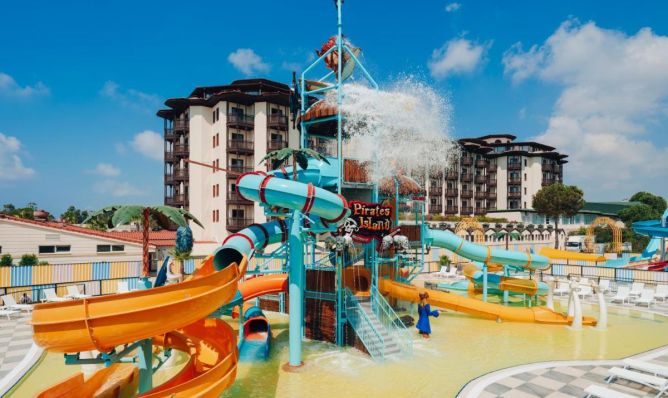 За децата: Детски бюфет, детски басейн, детски аквапарк с водна кула и 6 водни пързалки, детска площадка, мини клуб (4-12 г.), тийн клуб (13-17 г.), мини диско, детска анимация, детско столче, детска количка (под наем).