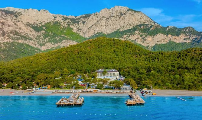 Намира се на 52 км от летище Анталия, на 45 км от центъра на Анталия, на 5 км от центъра на Кемер, на брега на морето. Изцяло реновиран през 2024 г., на обща площ от 60 000 м2.