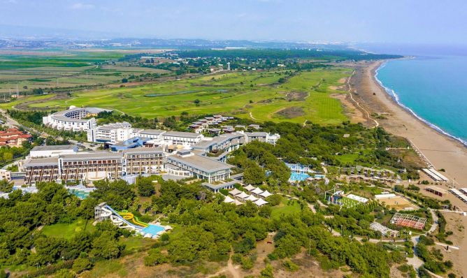 Хотелът се намира на 46 км. от международното летище в Анталия, на 54 км. от центъра на града, на брега на морето. Намира се в топ 100 на най-добрите GOLF хотели в света. Хотела е разположен на 1.000.000 m2, като 600 000 кв. м. са игрища за голф с гледка към плажната ивица.