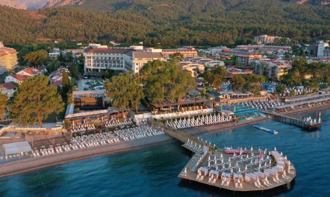 Намира се на 57 км от летище Анталия, на 40 км от центъра на Анталия, на 500 м от центъра на Кемер, на брега на морето. Построен 2018 г., на обща площ от 17 000 м2.