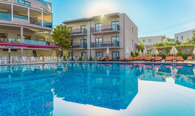 Намира се на 35 км от летище Бодрум, на 1 км от центъра на Бодрум, на 1 км от центъра на Гюмбет, на брега на морето. Построен 2011 г., на обща площ от 18 000 м². Реновиран 2022 г.