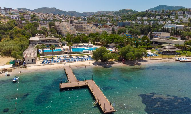 Намира се на 40 км от летище Бодрум, на 20 км от центъра на Бодрум, на 2 км от центъра на Ялъкавак, на брега на морето. Построен 2003 г., на обща площ от 16.000 м². Реновиран 2019 г.
