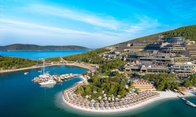 Хотелът е разположен на площ от 110.000 м² и се намира на 15 км. от летище Милас, на 20 км. от центъра на Бодрум, в района на Гюверджинлик. Разположен на брега на морето, отворен през 2018 г.