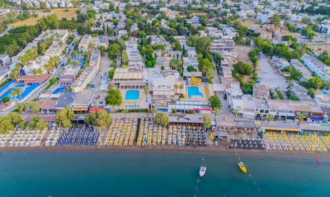 Намира се на 47 км от летище Бодрум, на 11 км от центъра на Бодрум, в район Ортакент, на брега на морето. Построен 1990 г., на обща площ от 17.000 м². Реновиран 2024 г.