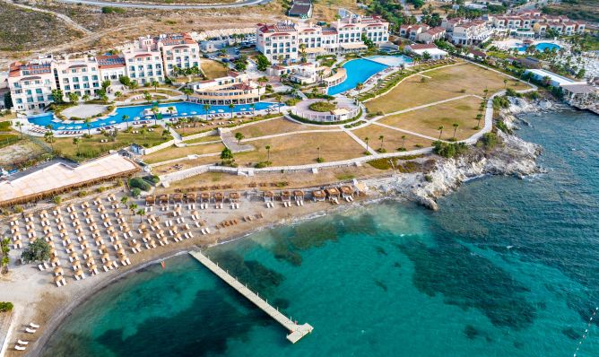 Хотелът се намира на 85 км от летище Измир, на 12 км от центъра на Чешме, на 7 км крепостта на Чешме, на 6 км от центъра на Алачати, на 8 км от известния плаж Ълъджа, на брега на морето. Реновиран 2024 година.