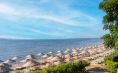 Собствен, пясъчен, притежаващ сертификат "Син флаг". Чадъри, шезлонги, матраци на плажа и при басейна - безплатно. Плажни кърпи не се предлагат.