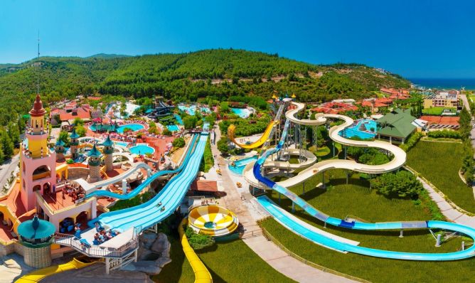 На разположение на гостите на хотела е аквапарк, който разполага с 31 водни пързалки, от които няколко екстремни (Super combo,Screamer, Crazy Raft, Boomerango, Space Bowl и др.), басейн със 7 вида изкуствени вълни, 400 метра дълга Lazy River, Lily Pad - място за срещи на родители и техните деца, а за по-малките деца са налични: голяма детска зона с пиратски кораб с 6 пързалки и интерактивни играчки, комплекс от пързалки „Подводен октопод“, жабешка пързалка и разбития кораб. Основни правила за ползване на Аквапарка: Не се препоръчва за хора с физически увреждания, сърдечни оплаквания и бременни жени. Деца на възраст под 12 години трябва да бъдат придружени от възрастен. Не се допуска използването на някои от пързалките от деца с височина под 120 см. Всички деца под 3-годишна възраст се изискват да носят "swim" памперси. Консумацията на хранa и напитки на теритотията на аквапарка е срещу заплащане.