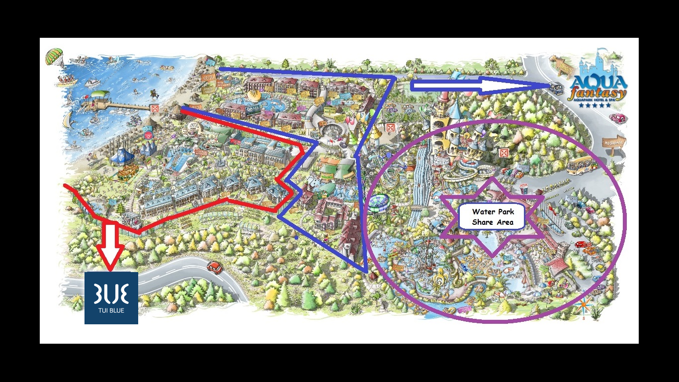 На разположение на гостите на хотела е аквапарк, който разполага с 31 водни пързалки, от които няколко екстремни (Super combo,Screamer, Crazy Raft, Boomerango, Space Bowl и др.), басейн със 7 вида изкуствени вълни, 400 метра дълга Lazy River, Lily Pad - място за срещи на родители и техните деца, а за по-малките деца са налични: голяма детска зона с пиратски кораб с 6 пързалки и интерактивни играчки, комплекс от пързалки „Подводен октопод“, жабешка пързалка и разбития кораб. Основни правила за ползване на Аквапарка: Не се препоръчва за хора с физически увреждания, сърдечни оплаквания и бременни жени. Деца на възраст под 12 години трябва да бъдат придружени от възрастен. Не се допуска използването на някои от пързалките от деца с височина под 120 см. Всички деца под 3-годишна възраст се изискват да носят "swim" памперси. Консумацията на хранa и напитки на теритотията на аквапарка е срещу заплащане.