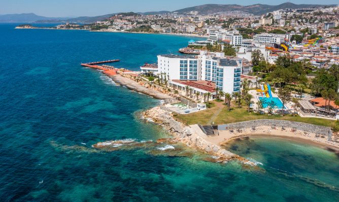 Хотелът се намира на 70 км. от летище Измир, на 125 км. от летище Милас, на 3 км. от центъра на Кушадасъ, на брега на морето. Построен 1991 г. на площ 18 824 кв.м, реновиран през 2014-2015 -2018 г.
