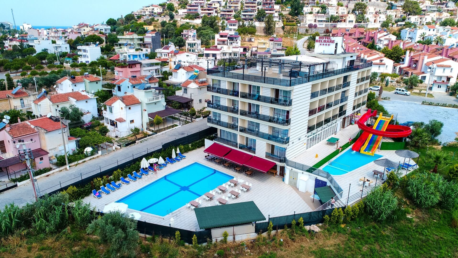 Хотелът се намира на 85 км от летище Измир, на 120 км. от летище Милас, на 5 км. от центъра на Кушадасъ, на 3 км от собствен плаж . Построен през 2014 г.