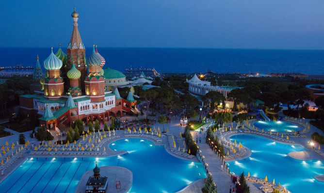 Вдъхновен от архитектурата на оригиналните руски дворци, Asteria Kremlin Palace дава възможност да откриете дома на руските царе. Хотелът се намира само на 12 км от летището в Анталия и на 21 км от центъра на град Анталия.
