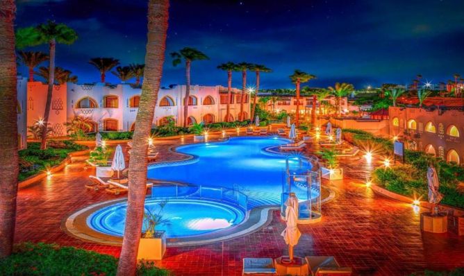 Domina Coral Bey Resort 5* Това е най-големия комплекс на територията на Шарм Ел Шейх с площ над 1000 000 кв.м разпределени в 6 квартала. Предвижването е с колички. Нашите туристи се настаняват в квартал Oazis или Bella Vista в стандартни стаи, като 90 % от тях са с гледка море или басейн . Настаняване на дете или трети възрастен е на разтегателен диван.