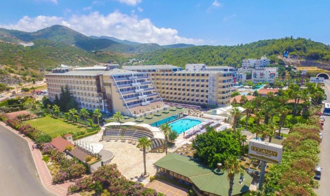 Намира се на 125 км от летище Анталия, на 133 км от центъра на Анталия, на 7 км от центъра на Алания, на 100 м от на брега на морето. Построен 1988 г., на обща площ от 22 000 м2. Реновиран 2016 г.