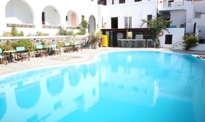 Хотелът се намира в столицата на Санторини, гр.Фира. На тихо място,на 150м.от центъра.
