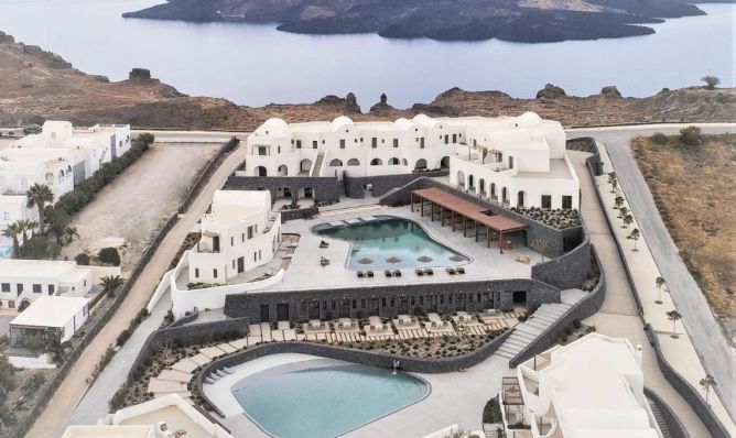 Hotel Orama 5* се намира в столицата Фира, с гледка към Калдерата. Централната част на Фира е разположена само на 5 минути пеша, а летището на Санторини на 7.5 км.