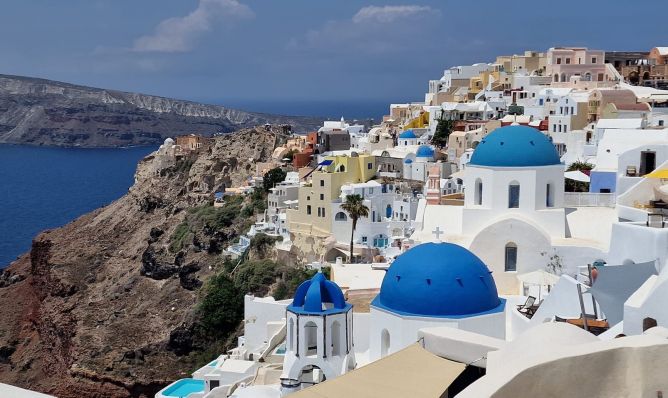 Най-мечтаният гръцки остров е пред нас. Разполагаме с цял ден, за да направим най-красивите снимки в албума си. Разходете се сами или елате с нас на екскурзия до 2 от най-знаковите места на острова. Ще разгледаме Ия, типично гръцко селище с тесни улички, традиционни къщи и прочутите бели църкви със сини куполи, станали визитна картичка на острова. Селцето се намира високо на хълма и от него се открива зрелищна картина към залива на Санторини. Ще посетим и столицата Фира, разположена върху калдерата на вулкана. Градът е с много оживени и живописни улички, обградени от синьо-бели къщи, магазини и заведения. От тук тръгва и въжения лифт, с който ще се спуснем до пристанището на Фира, за да се приберем на кораба /слизането на острова е с лодки от кораба.